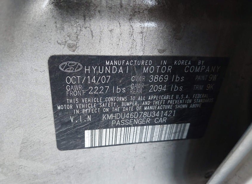 - VIN: KMHDU46D78U341421