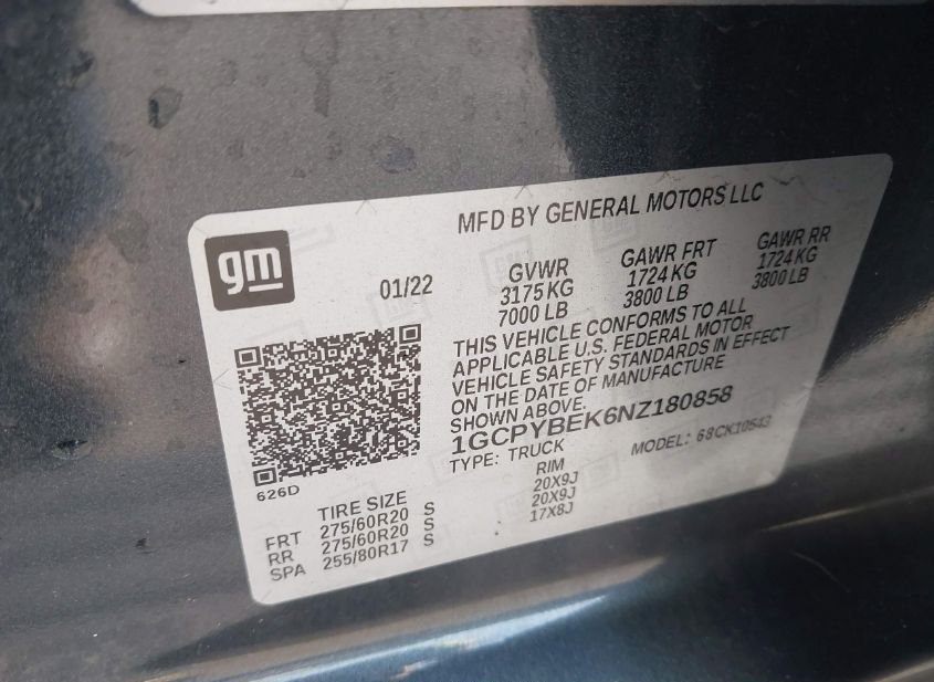 - VIN: 1GCPYBEK6NZ180858