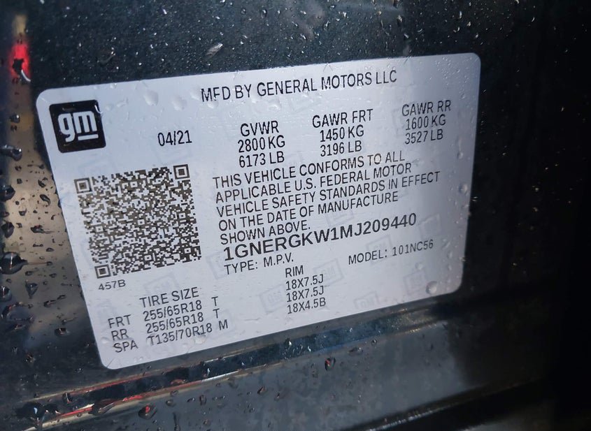 - VIN: 1GNERGKW1MJ209440