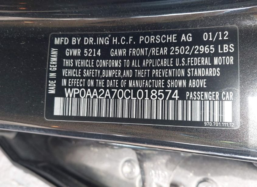 - VIN: WP0AA2A70CL018574
