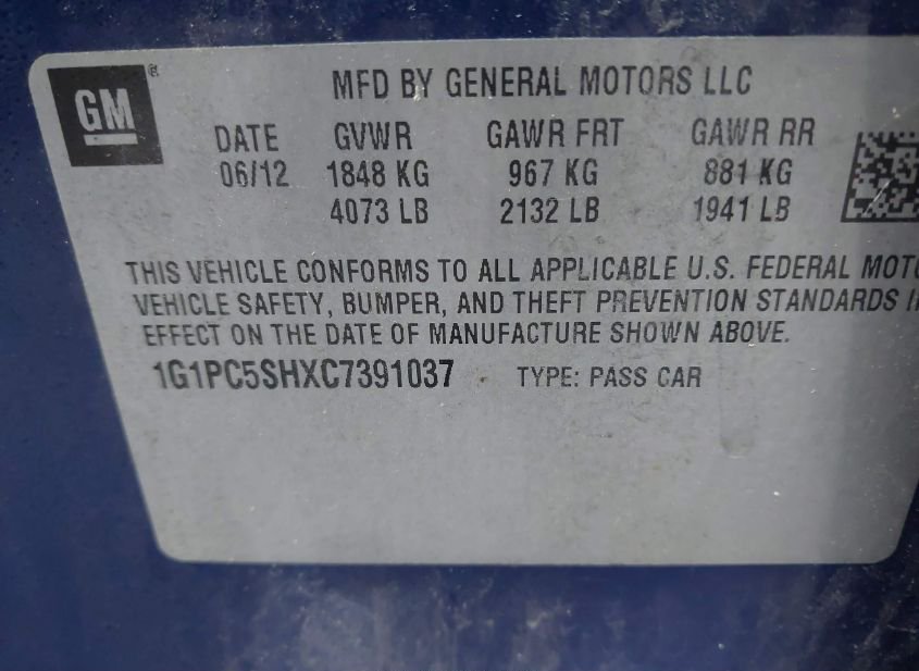- VIN: 1G1PC5SHXC7391037