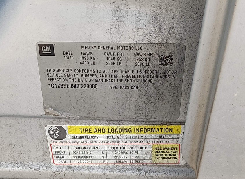 - VIN: 1G1ZB5E09CF228886