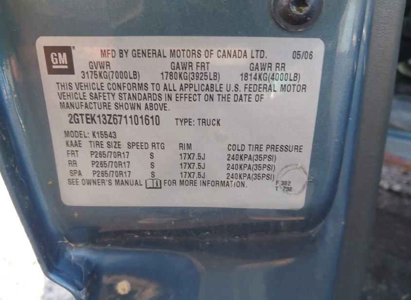 - VIN: 2GTEK13Z671101610