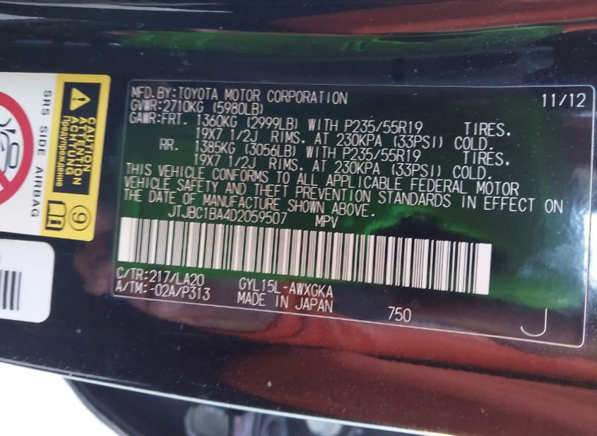 - VIN: JTJBC1BA4D2059507