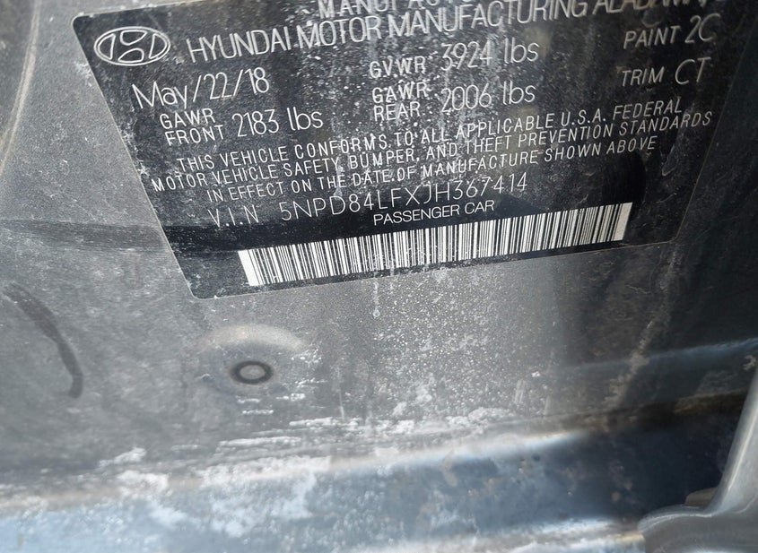- VIN: 5NPD84LFXJH367414