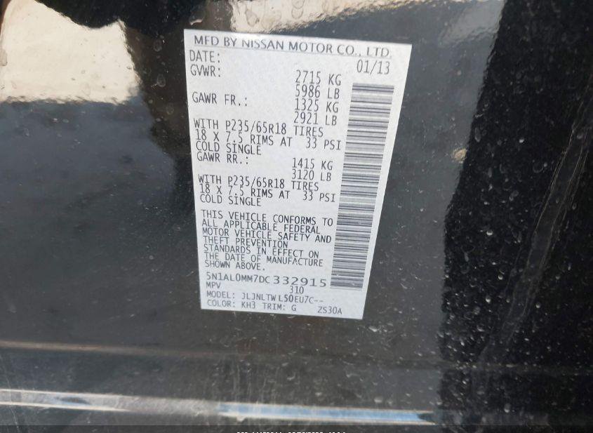 - VIN: 5N1AL0MM7DC332915