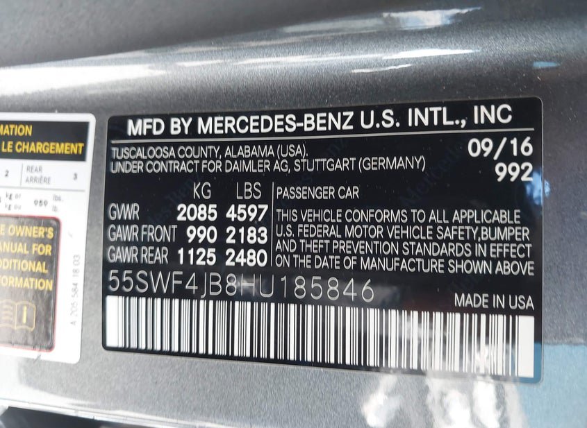 - VIN: 55SWF4JB8HU185846