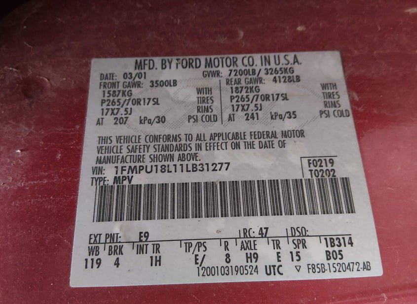 - VIN: 1FMPU18L11LB31277