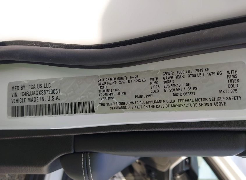 - VIN: 1C4RJJAGXS8720061