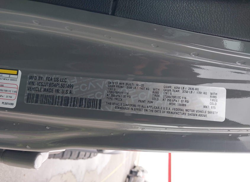- VIN: 1C6JJTBG4PL501499