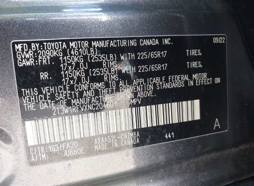 - VIN: 2T3W1RFVXNC204601