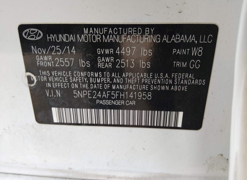 - VIN: 5NPE24AF5FH141958