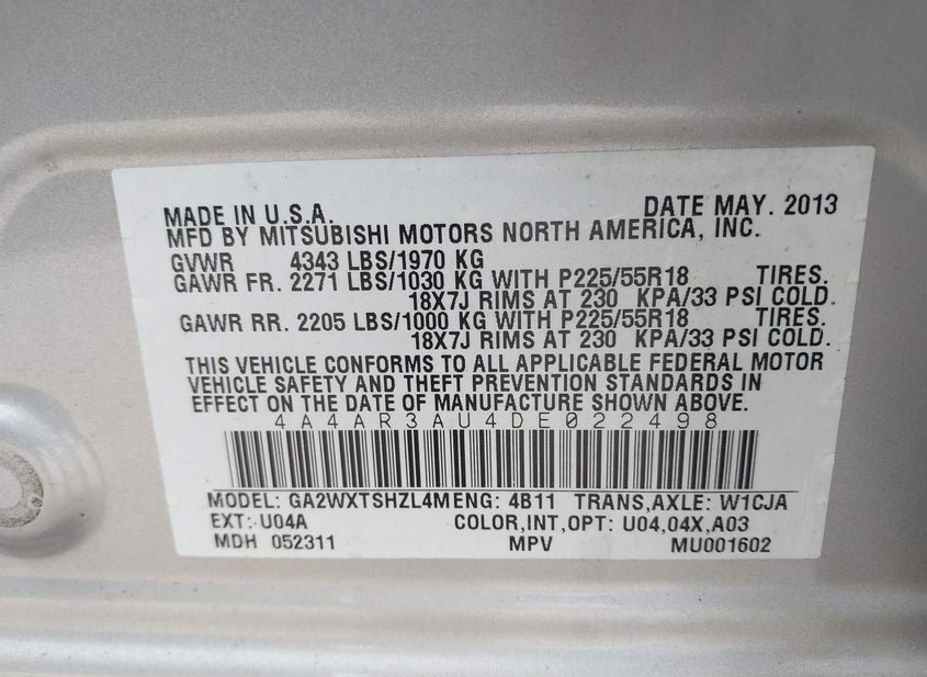 - VIN: 4A4AR3AU4DE022498