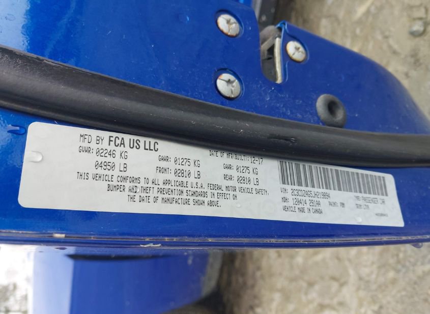 - VIN: 2C3CDZAG5JH219894