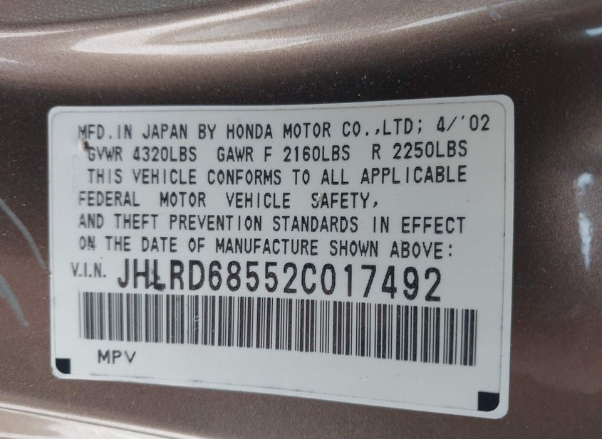 - VIN: JHLRD68552C017492