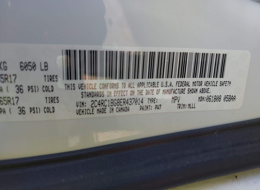 - VIN: 2C4RC1BG8ER437014