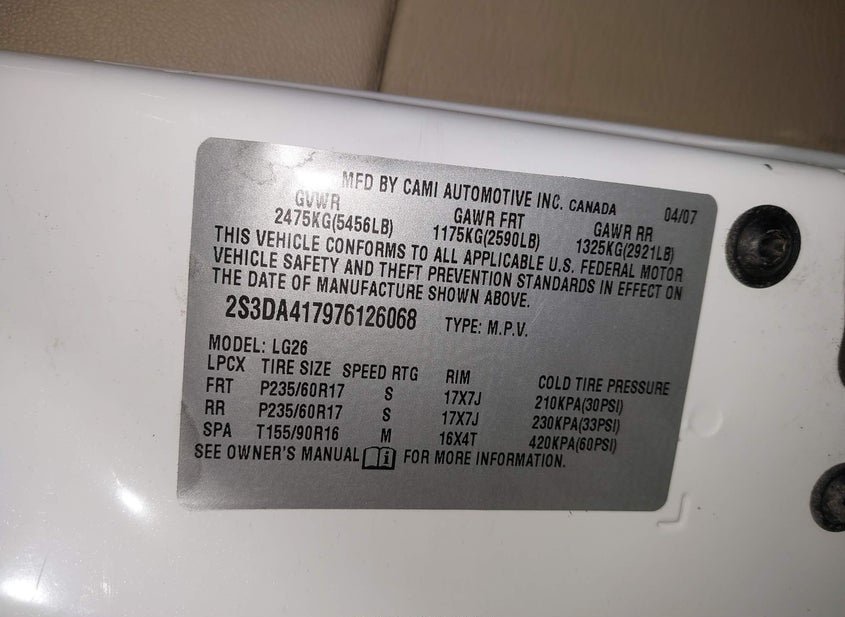 - VIN: 2S3DA417976126068