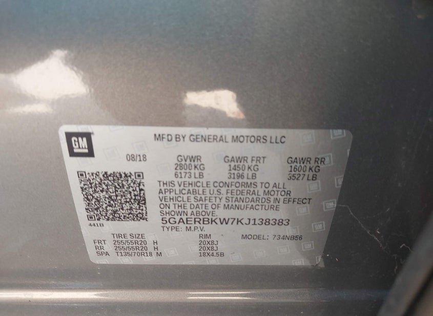 - VIN: 5GAERBKW7KJ138383