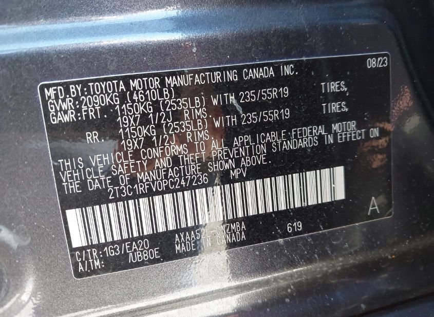 - VIN: 2T3C1RFV0PC247236