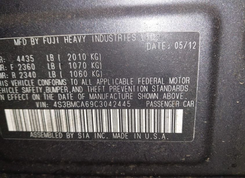 - VIN: 4S3BMCA69C3042445