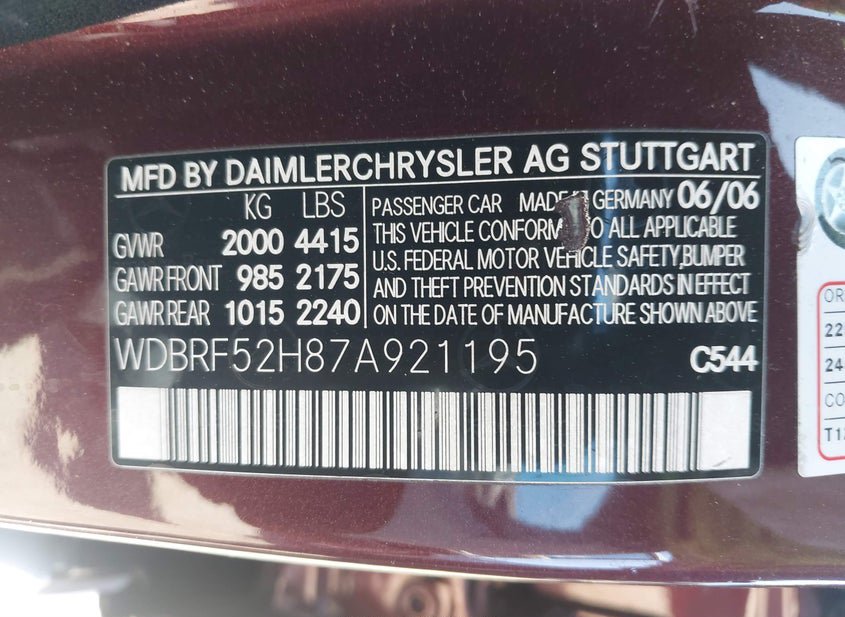 - VIN: WDBRF52H87A921195