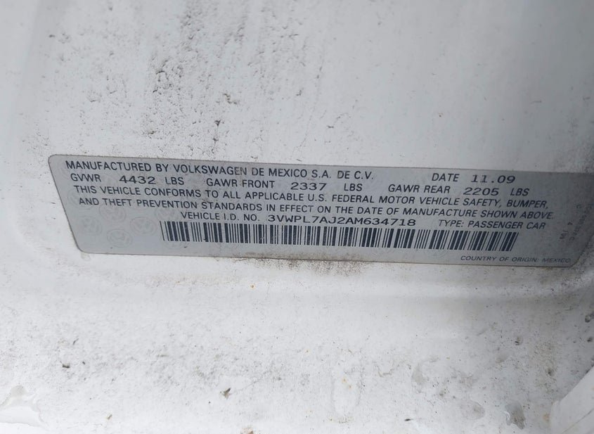 - VIN: 3VWPL7AJ2AM634718