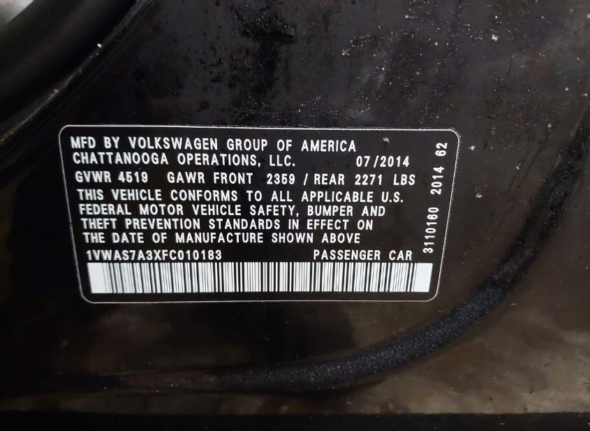 - VIN: 1VWAS7A3XFC010183