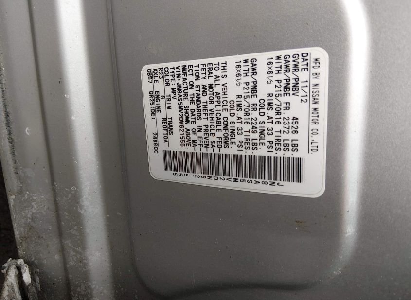 - VIN: JN8AS5MV2DW621555