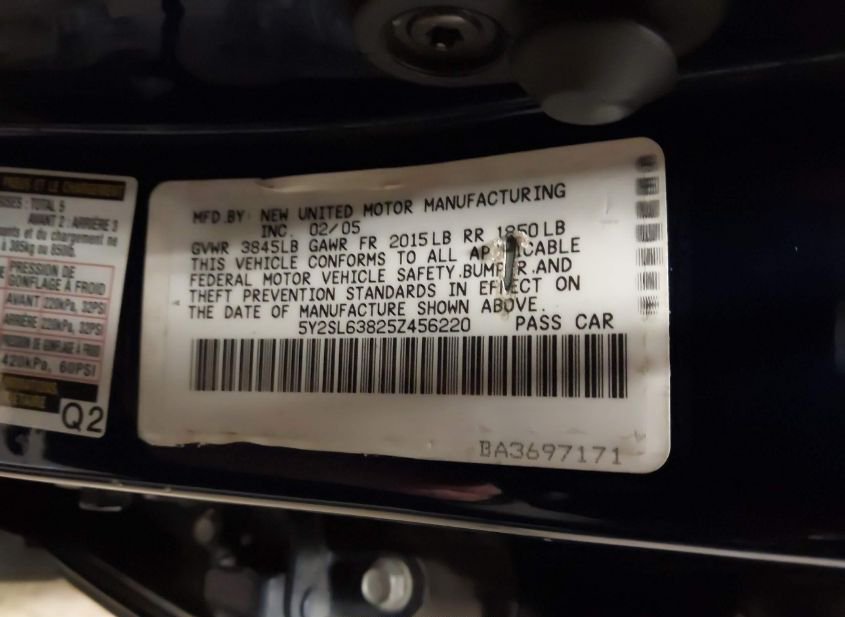 - VIN: 5Y2SL63825Z456220