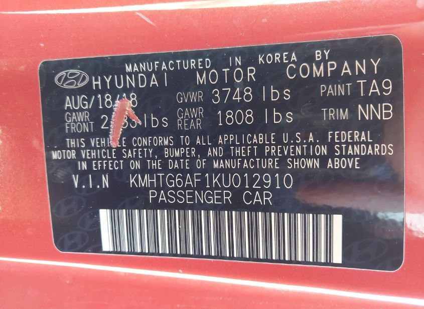 - VIN: KMHTG6AF1KU012910