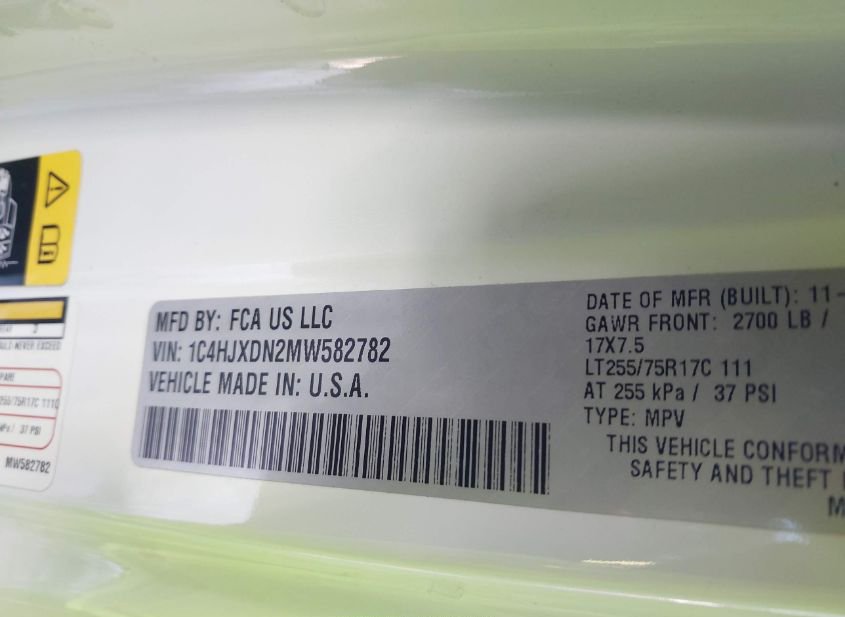- VIN: 1C4HJXDN2MW582782