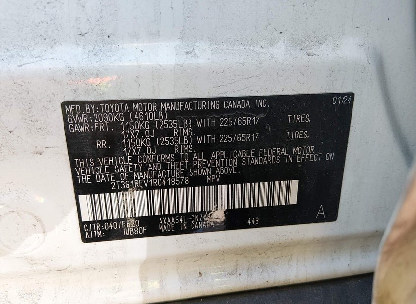 - VIN: 2T3G1RFV1RC418578
