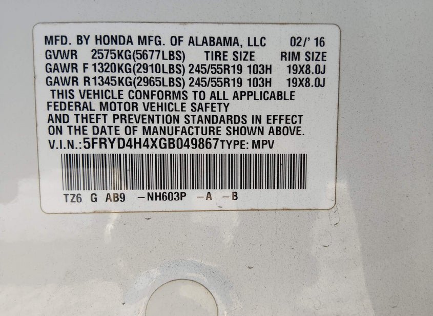 - VIN: 5FRYD4H4XGB049867