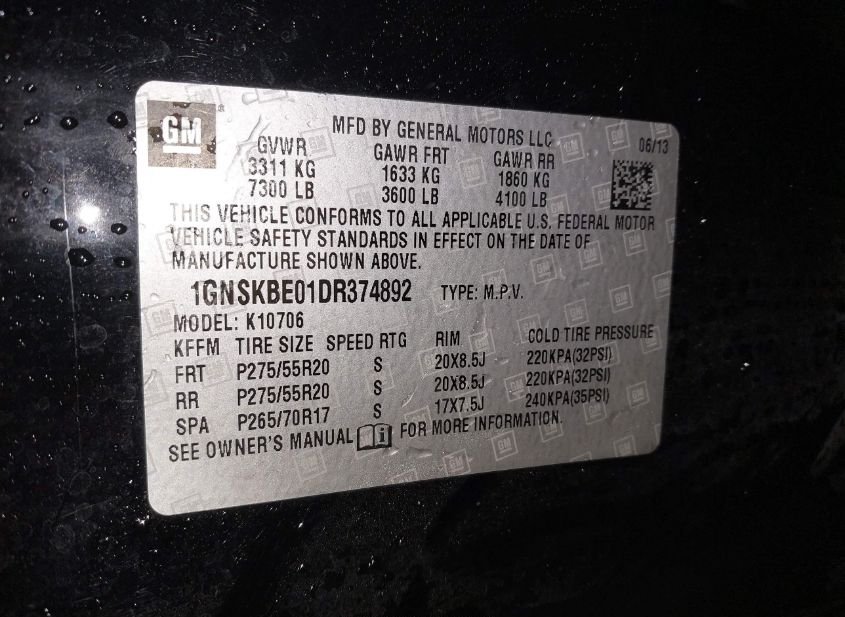 - VIN: 1GNSKBE01DR374892