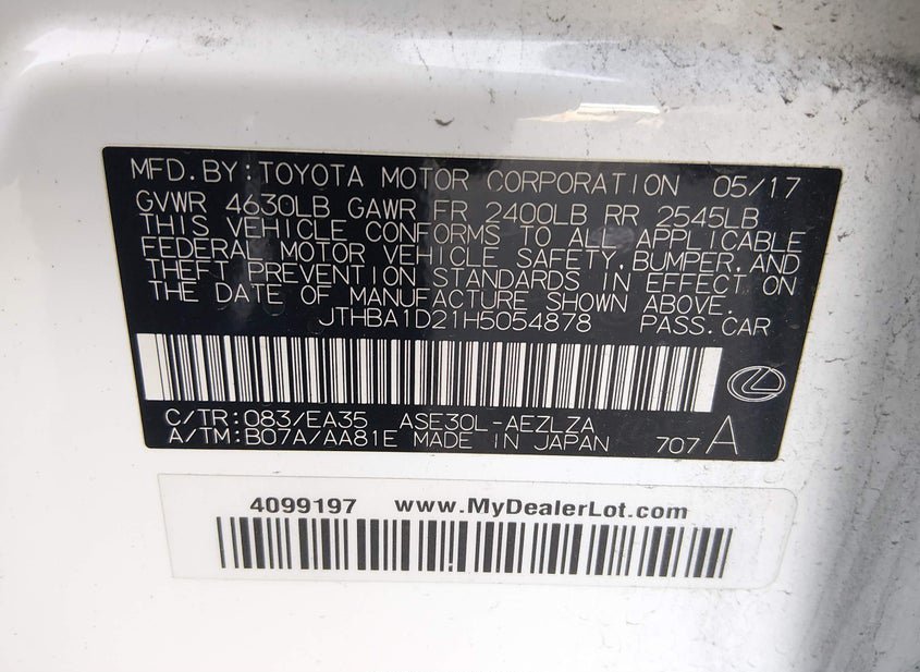- VIN: JTHBA1D21H5054878