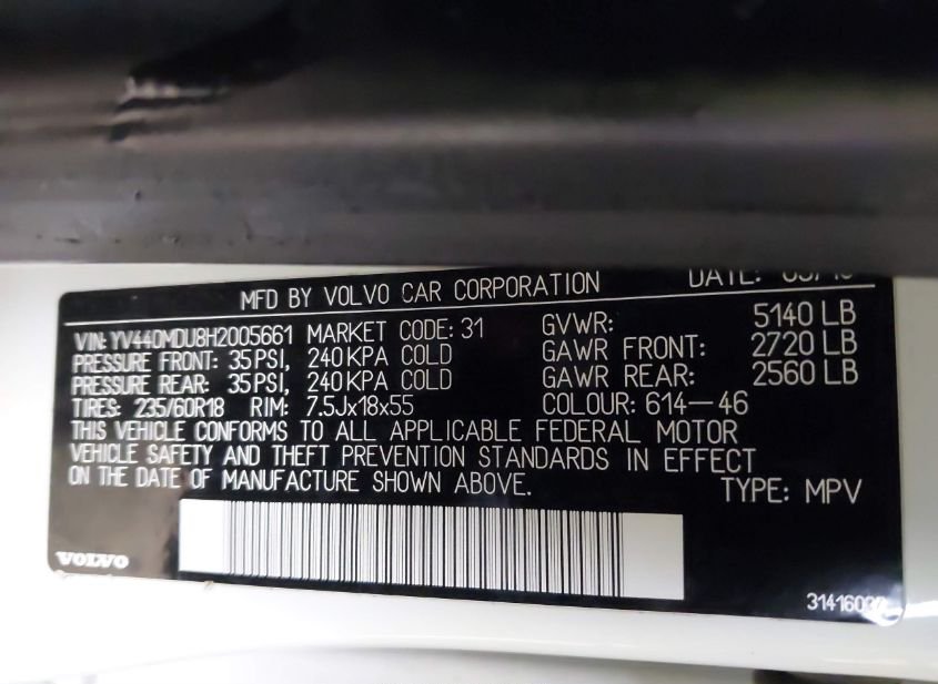 - VIN: YV440MDU8H2005661