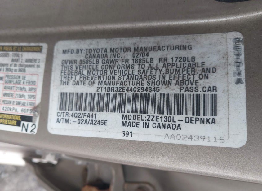 - VIN: 2T1BR32E44C294345