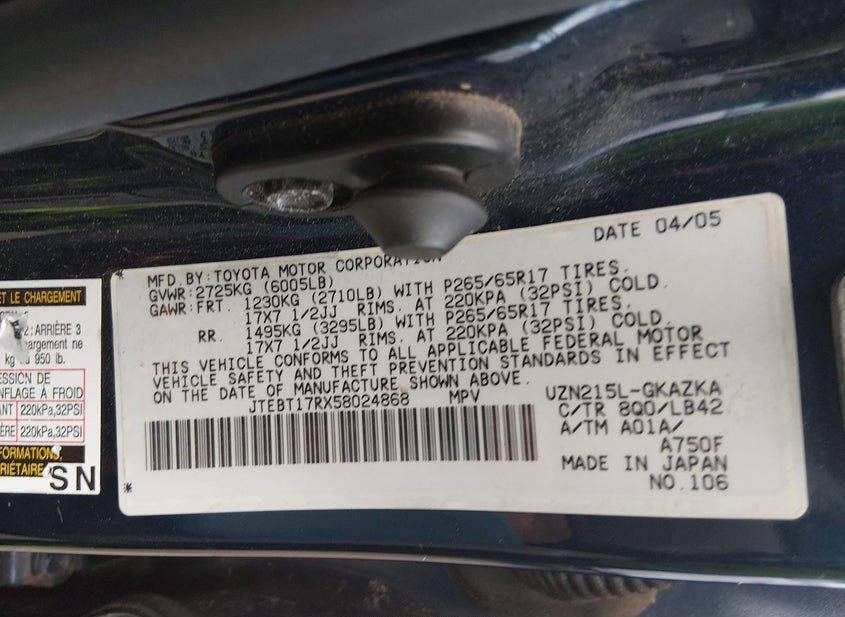 - VIN: JTEBT17RX58024868