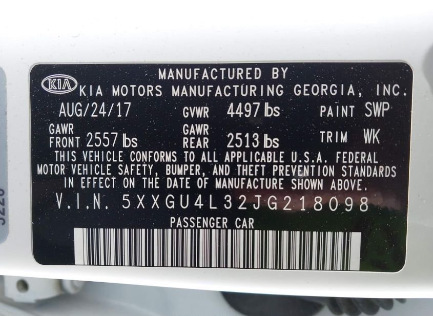 - VIN: 5XXGU4L32JG218098