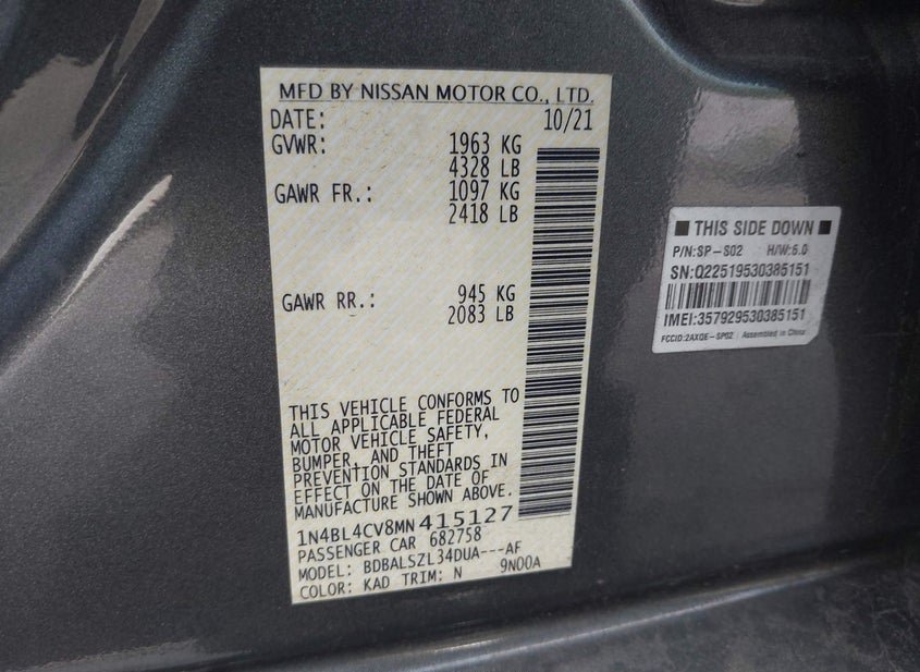 - VIN: 1N4BL4CV8MN415127