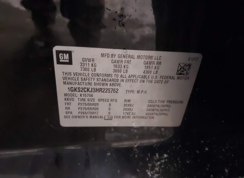 - VIN: 1GKS2CKJ3HR225762