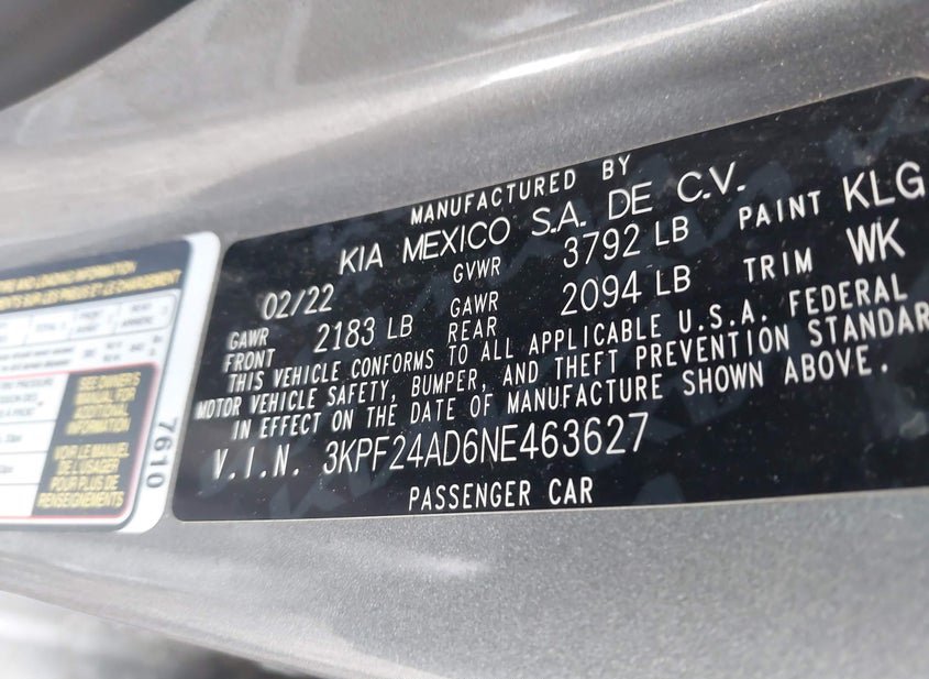 - VIN: 3KPF24AD6NE463627
