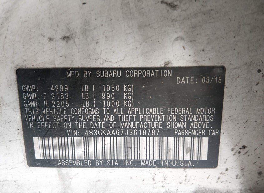 - VIN: 4S3GKAA67J3618787