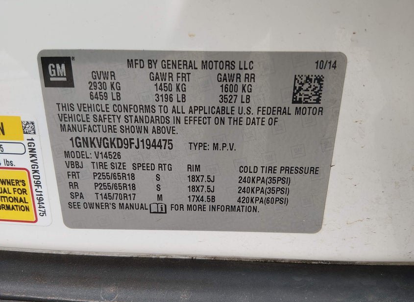 - VIN: 1GNKVGKD9FJ194475