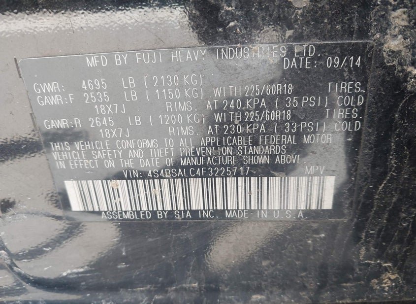 - VIN: 4S4BSALC4F3225717