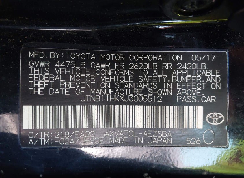 - VIN: JTNB11HKXJ3005512