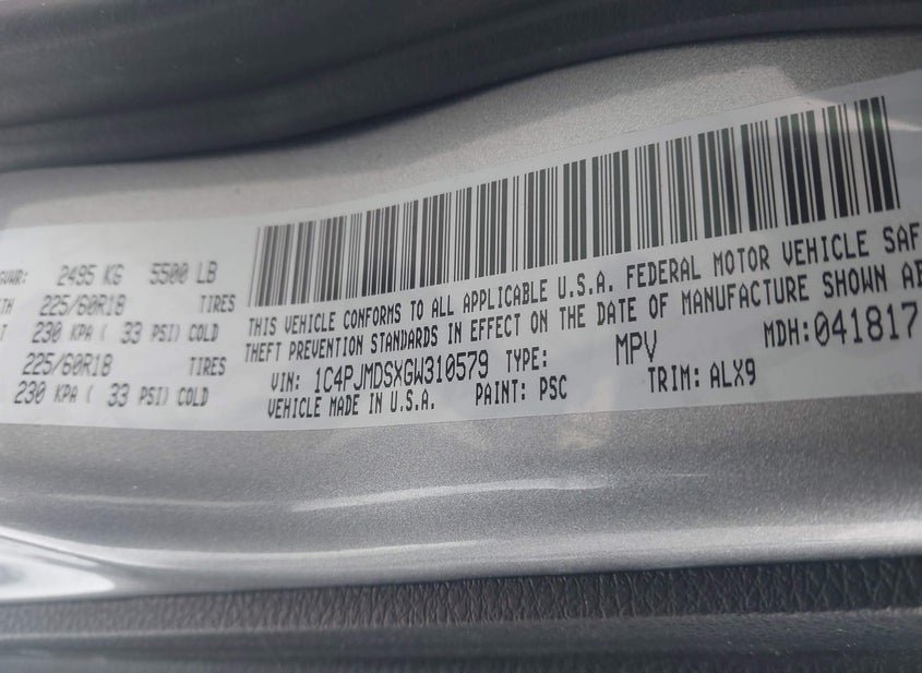 - VIN: 1C4PJMDSXGW310579