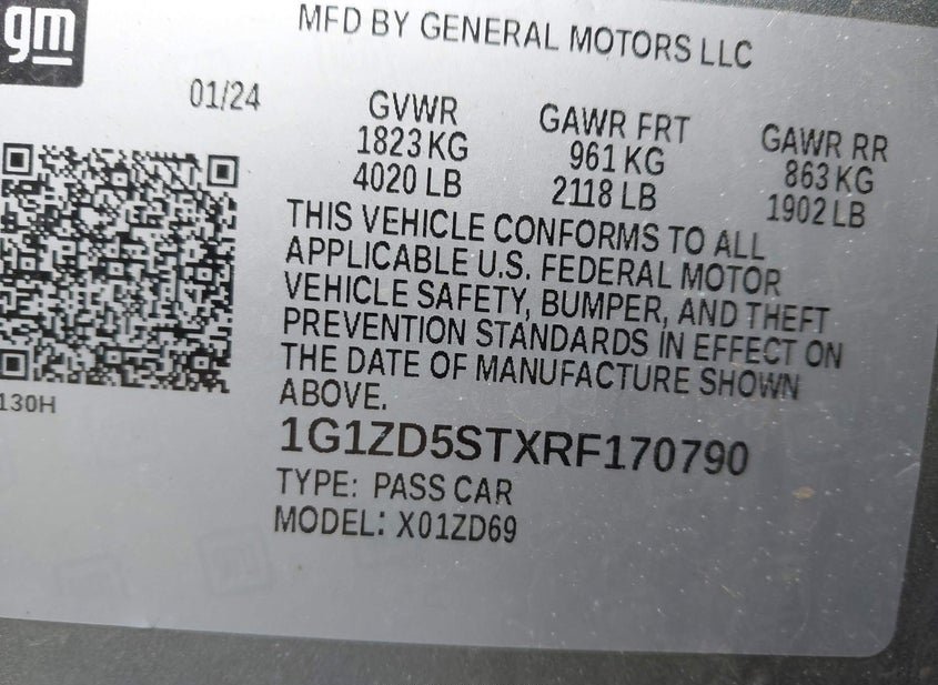 - VIN: 1G1ZD5STXRF170790