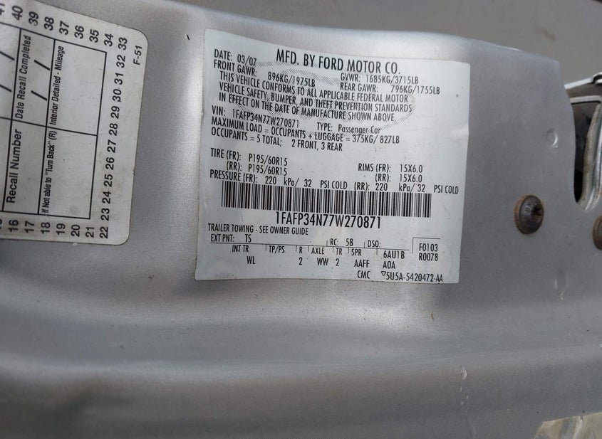 - VIN: 1FAFP34N77W270871