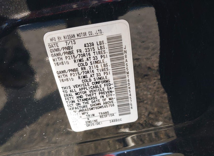 - VIN: JN8AS5MT6DW545756